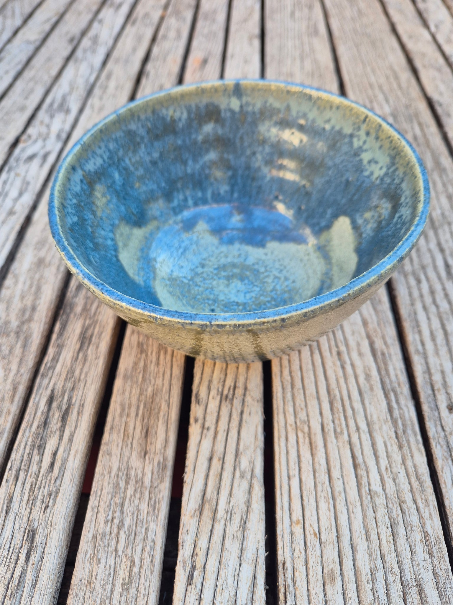Voici un bol en grès émaillé turquoise surélevé d'un pied pour plus d'élégance et de facilité de préhension.